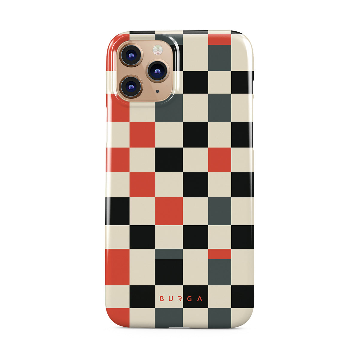 Dieses Design enthält: Schachbrettmuster, Orange, Schwarz, Grau, Weiß, geometrisches Muster