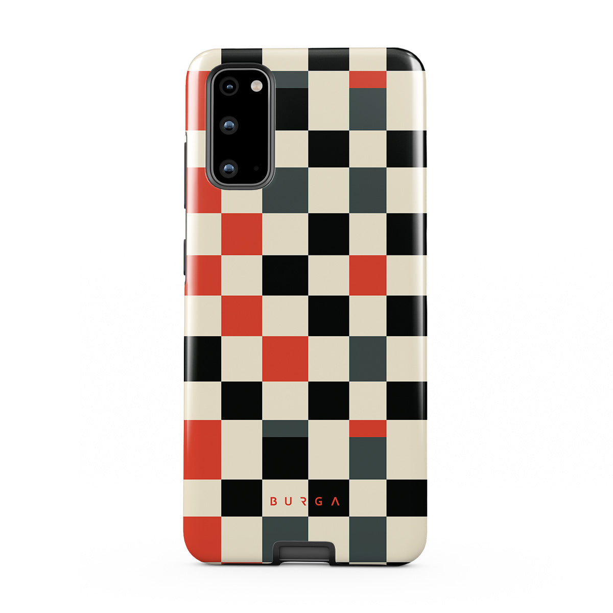 Dieses Design enthält: Schachbrettmuster, Orange, Schwarz, Grau, Weiß, geometrisches Muster
