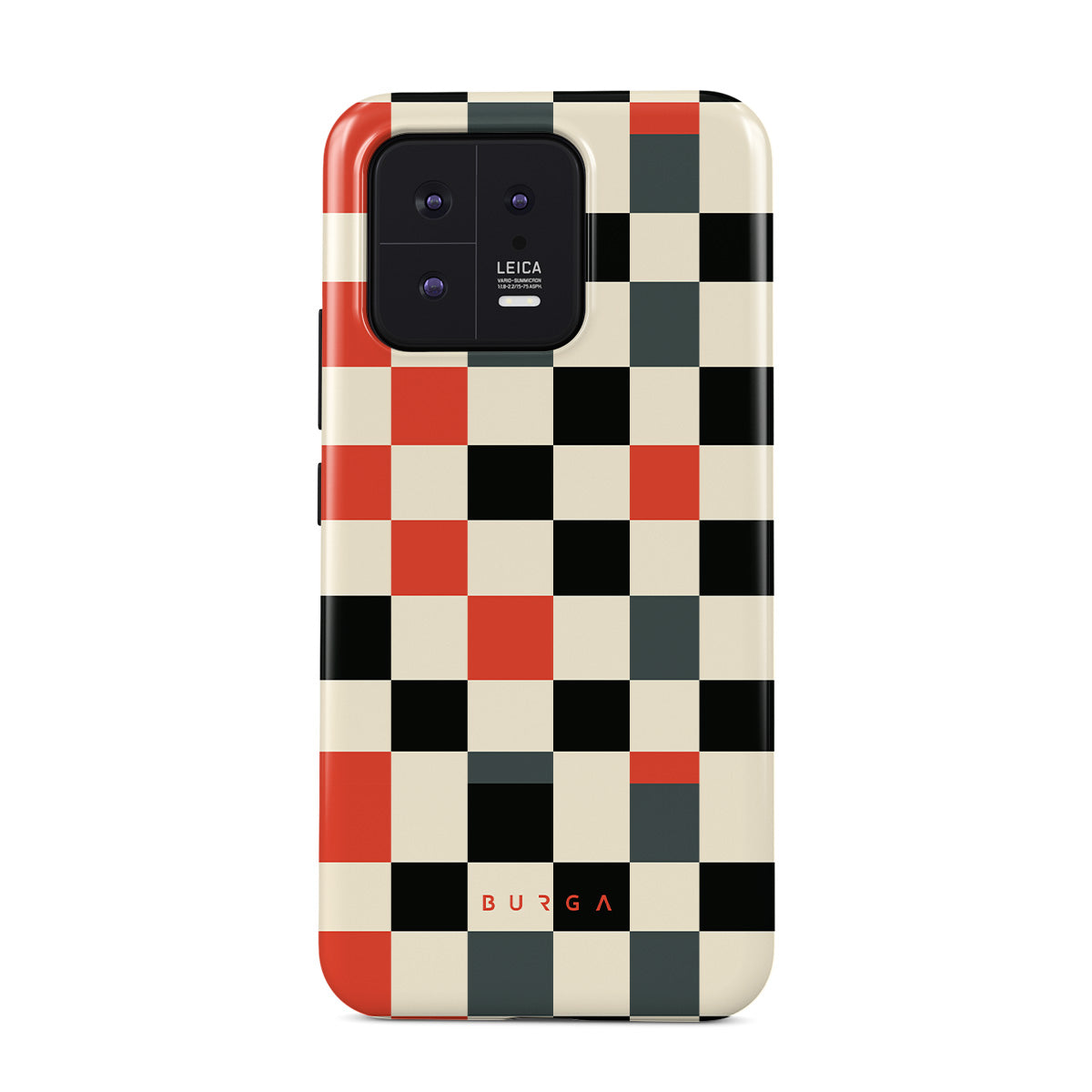 Dieses Design enthält: Schachbrettmuster, Orange, Schwarz, Grau, Weiß, geometrisches Muster