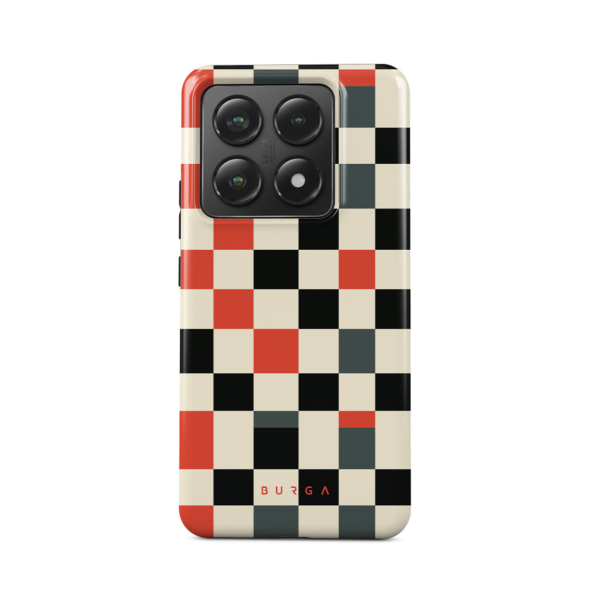 Dieses Design enthält: Schachbrettmuster, Orange, Schwarz, Grau, Weiß, geometrisches Muster