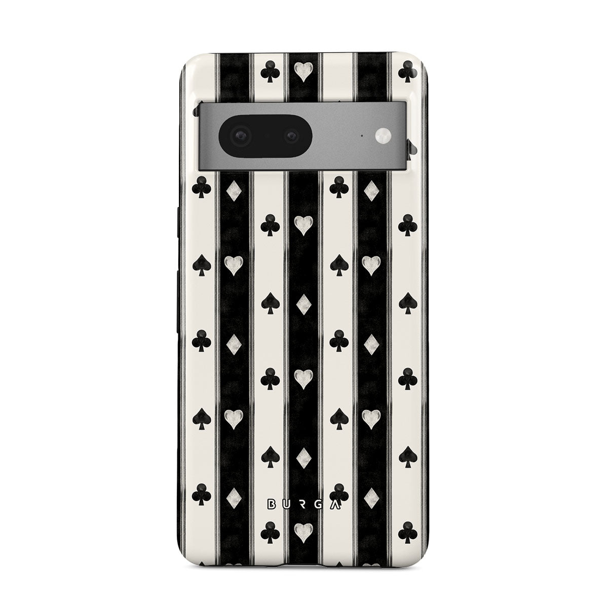 Dieses Design enthält: schwarz-weiße Streifen, Herzen, Spielkartensymbole, Vintage-Stil