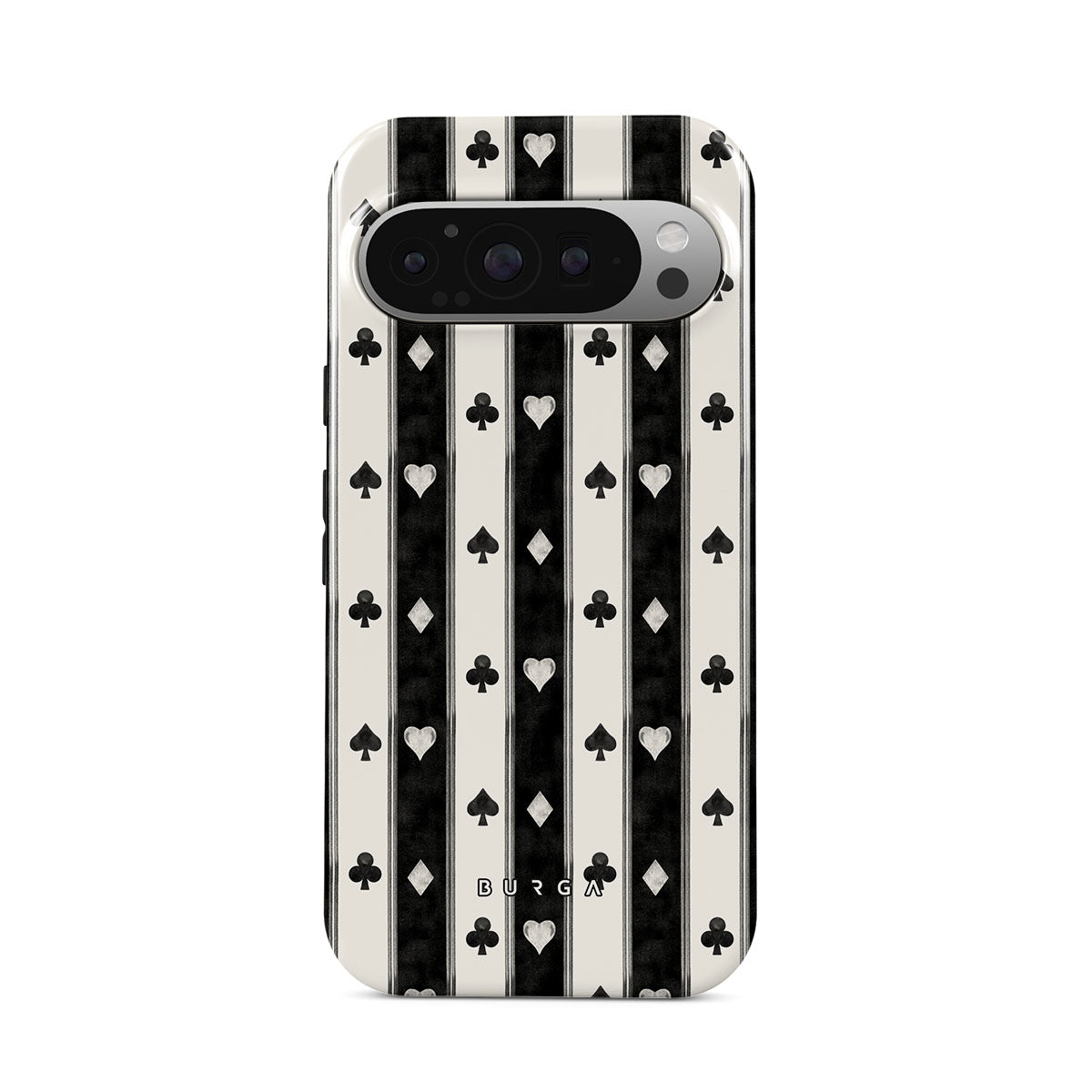 Dieses Design enthält: schwarz-weiße Streifen, Herzen, Spielkartensymbole, Vintage-Stil