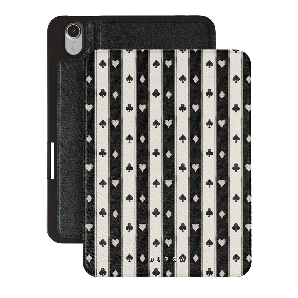 Dieses Design enthält: schwarz-weiße Streifen, Herzen, Spielkartensymbole, Vintage-Stil