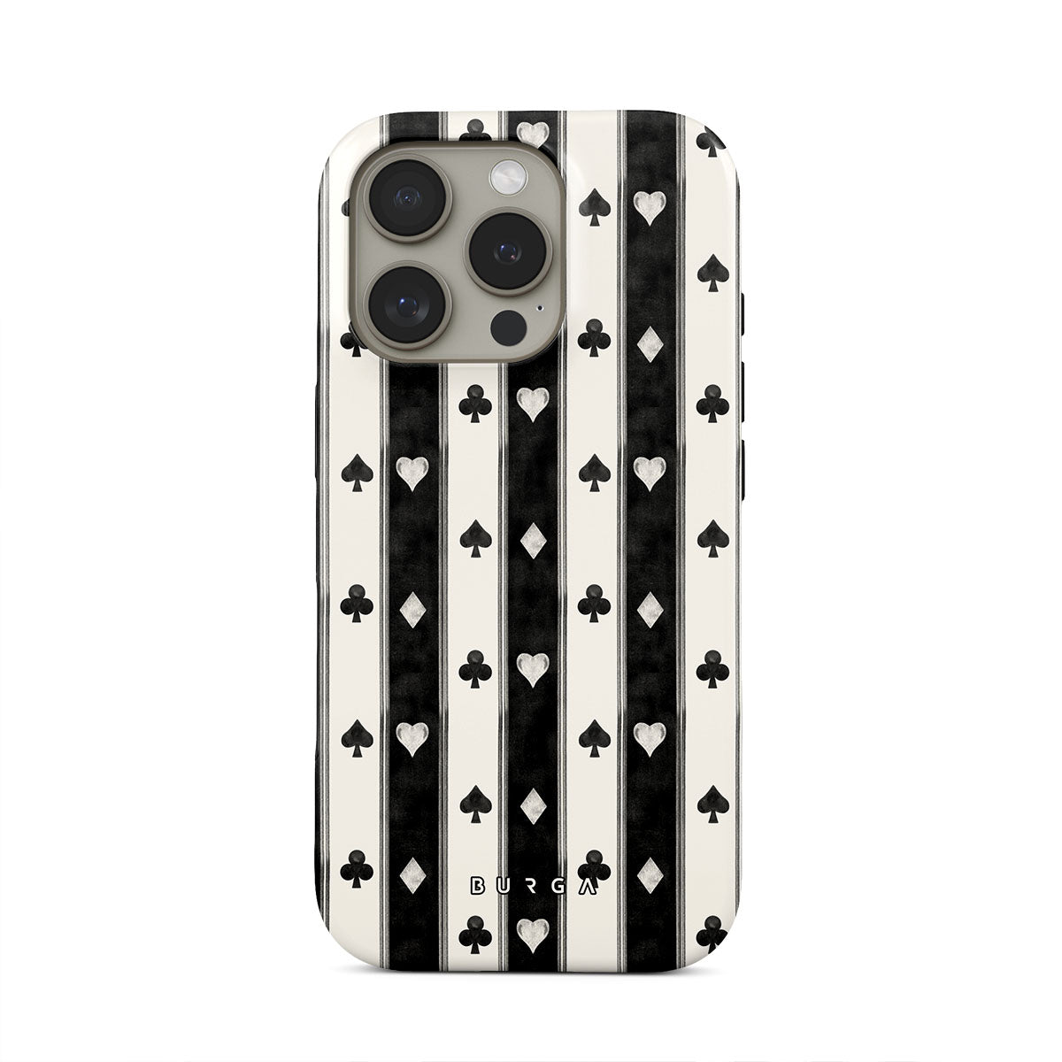 Dieses Design enthält: schwarz-weiße Streifen, Herzen, Spielkartensymbole, Vintage-Stil