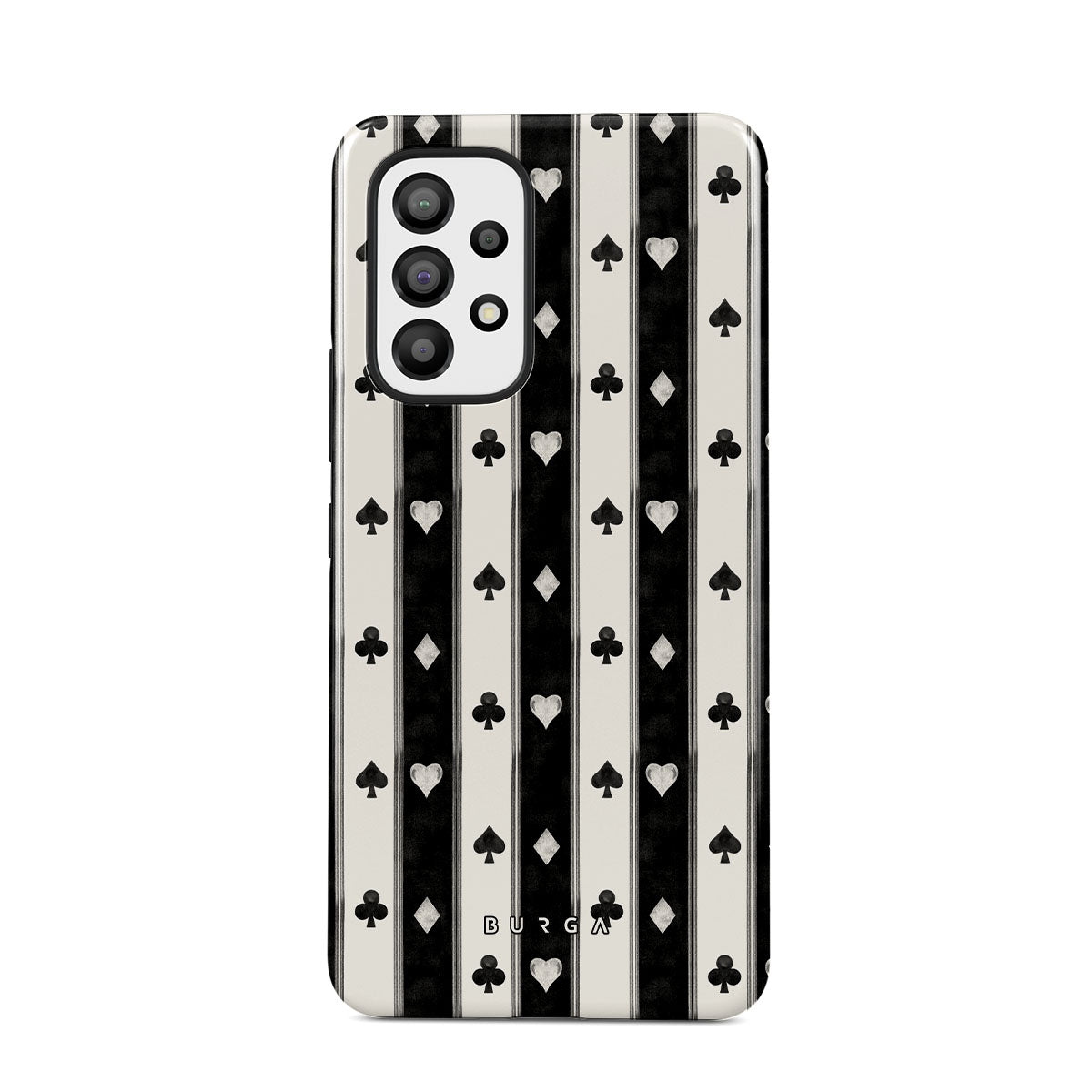 Dieses Design enthält: schwarz-weiße Streifen, Herzen, Spielkartensymbole, Vintage-Stil