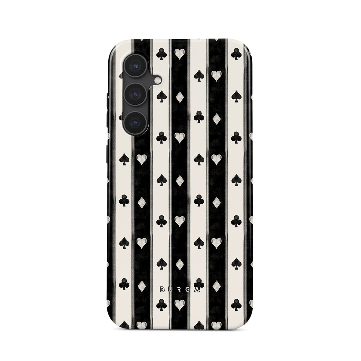 Dieses Design enthält: schwarz-weiße Streifen, Herzen, Spielkartensymbole, Vintage-Stil