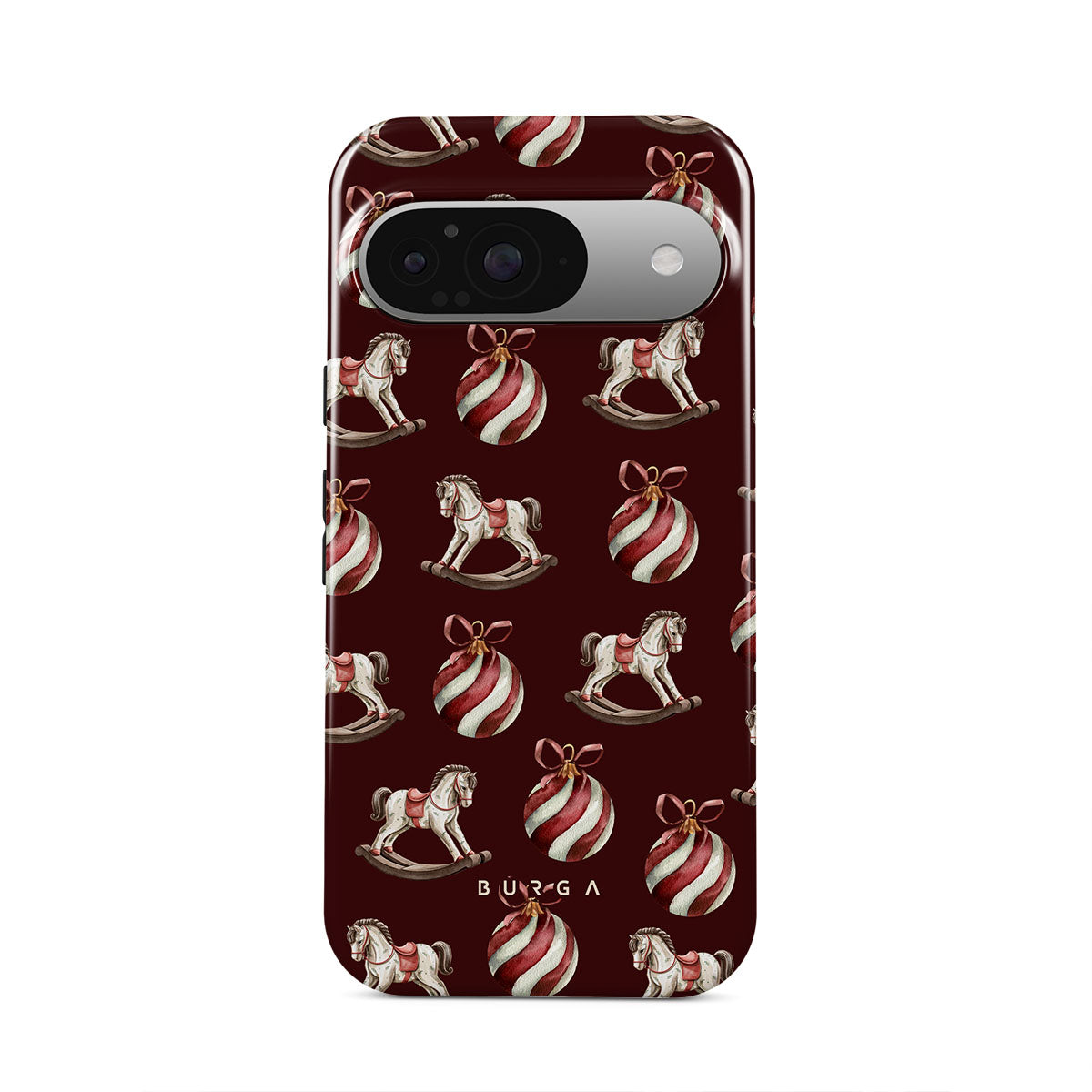 Dieses Design bietet: Schaukelpferde, Kugeln, Rot, Weihnachtsmuster