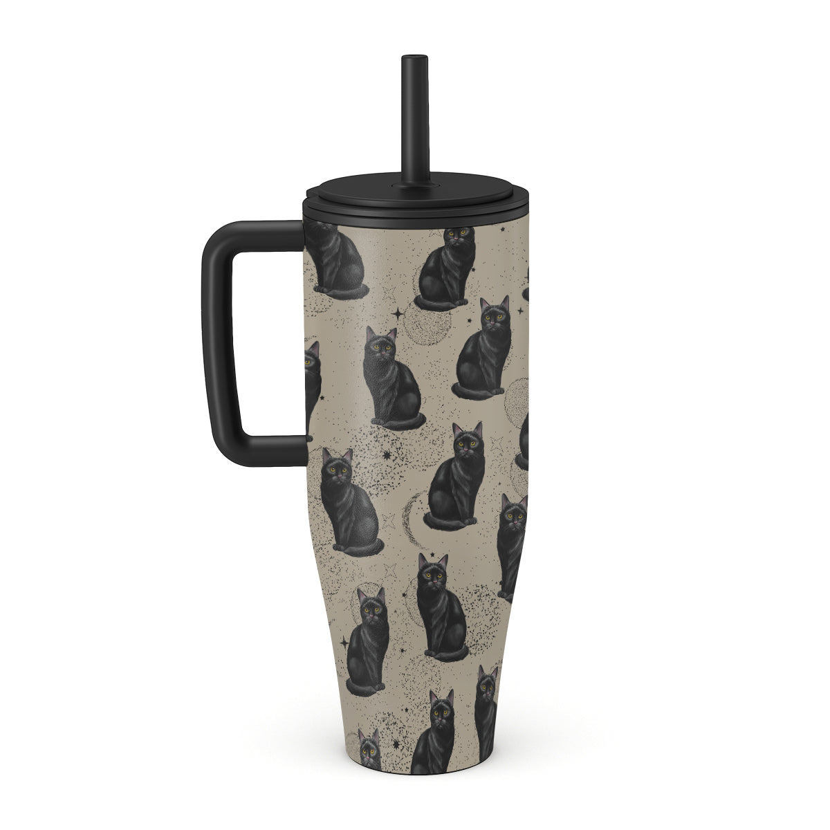 Dieses Design zeigt: schwarze Katzen, mystische Symbole.