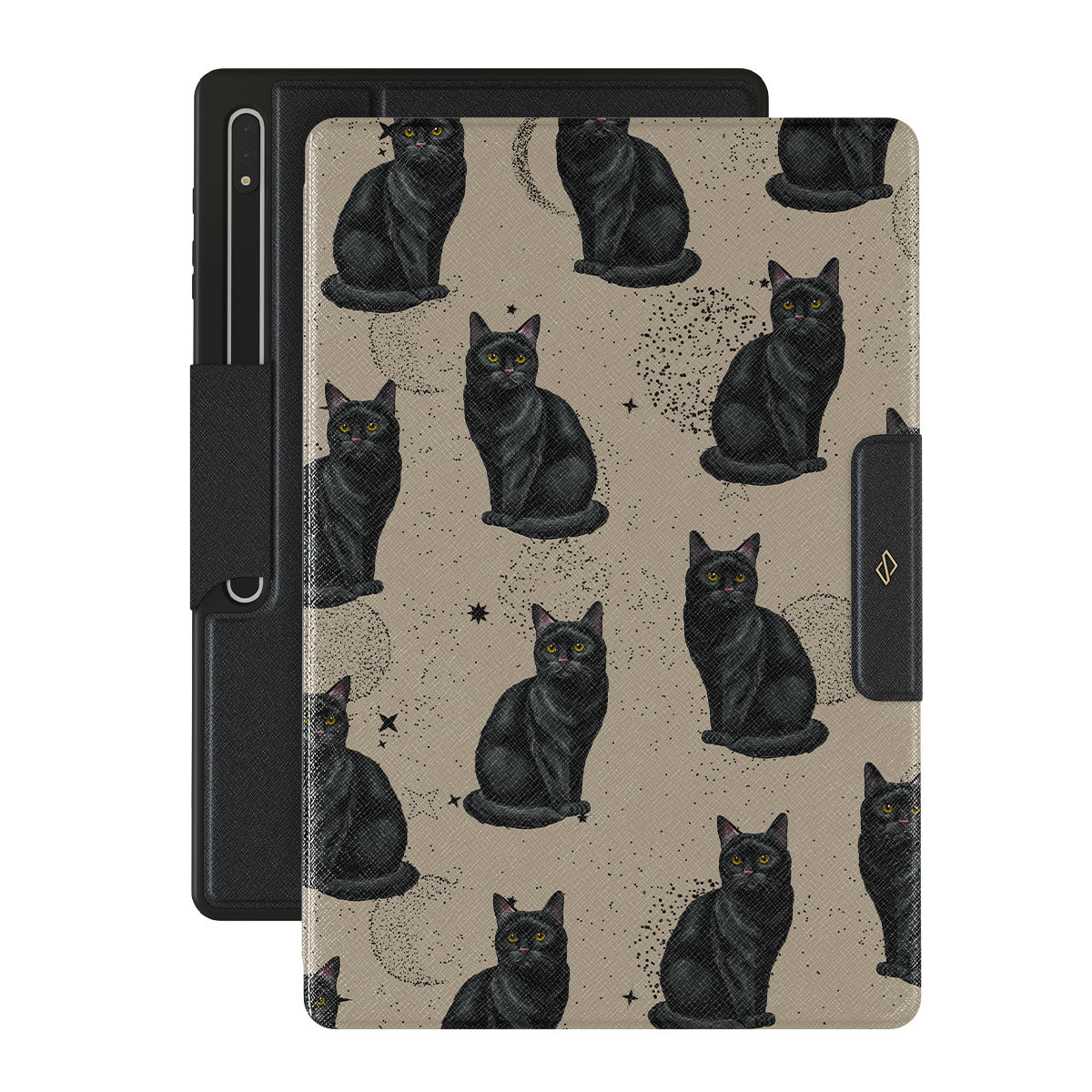 Dieses Design zeigt: schwarze Katzen, mystische Symbole.