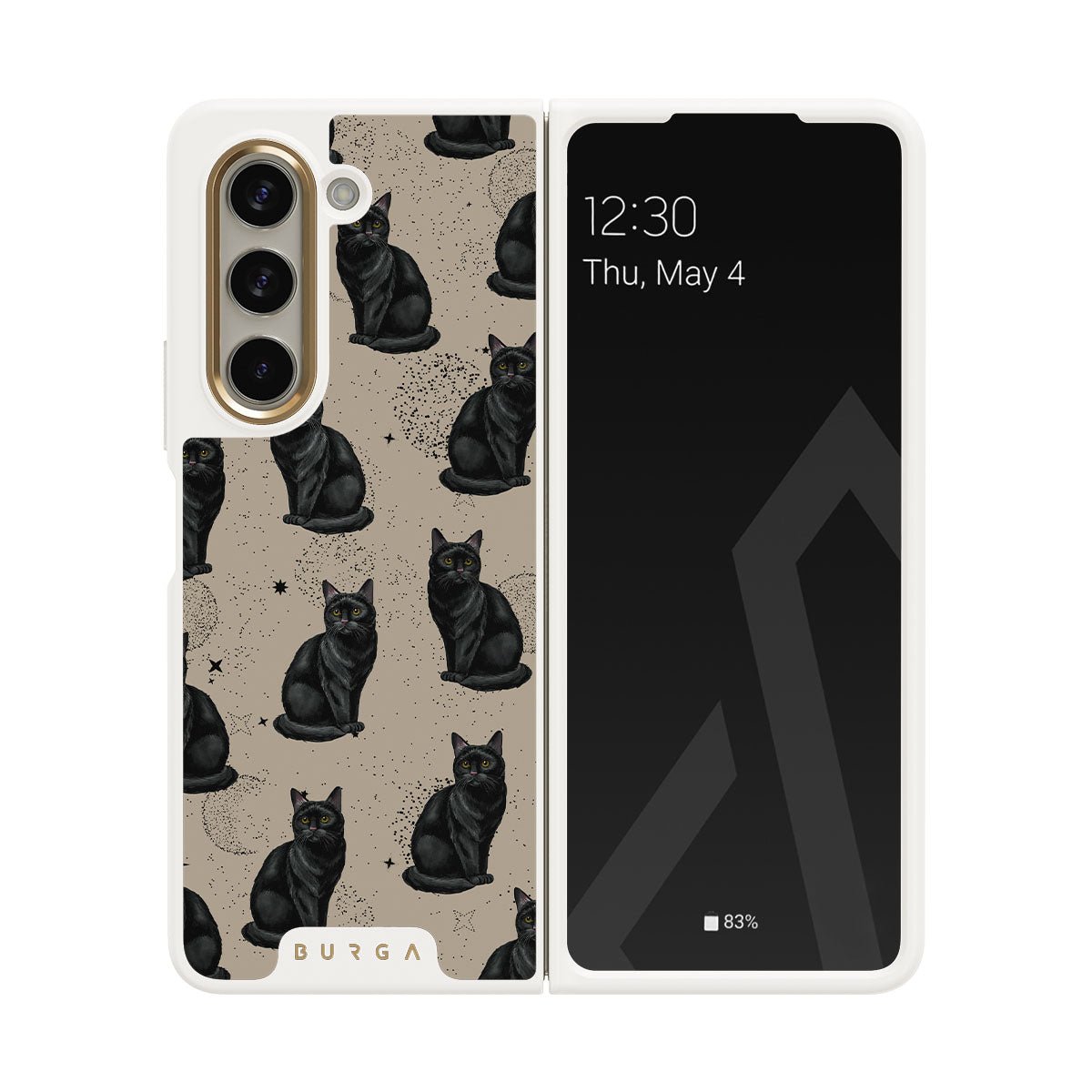 Dieses Design zeigt: schwarze Katzen, mystische Symbole.