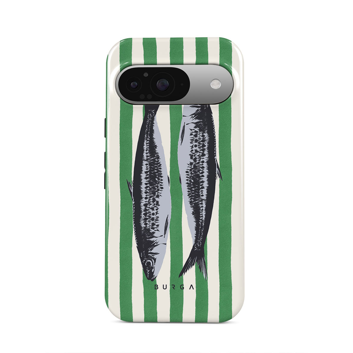 Dieses Design enthält: Sardinen, grüne Streifen, ozeanische Motive.