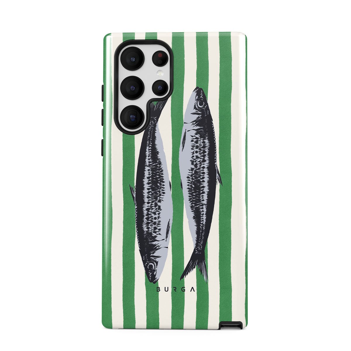 Dieses Design enthält: Sardinen, grüne Streifen, ozeanische Motive.