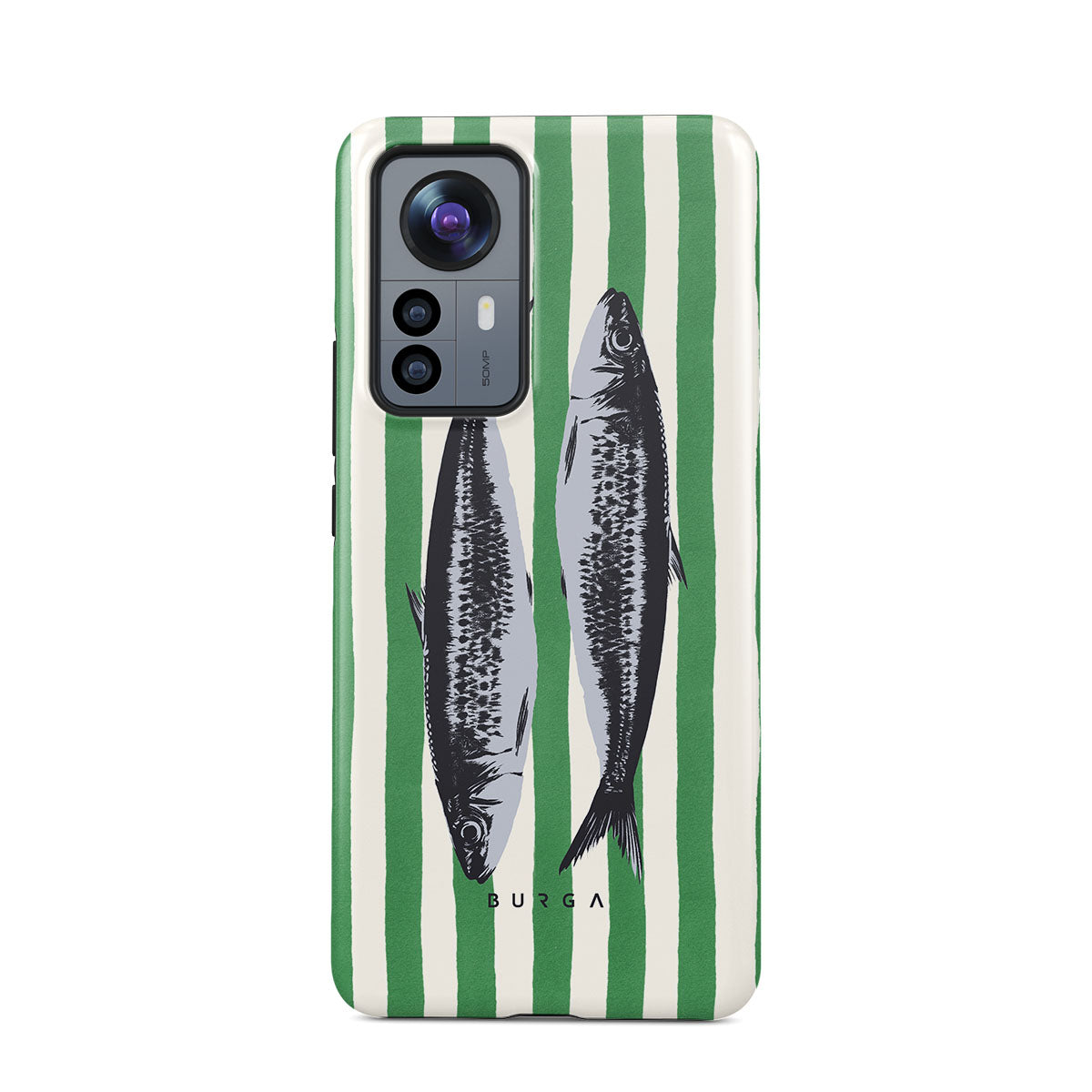Dieses Design enthält: Sardinen, grüne Streifen, ozeanische Motive.