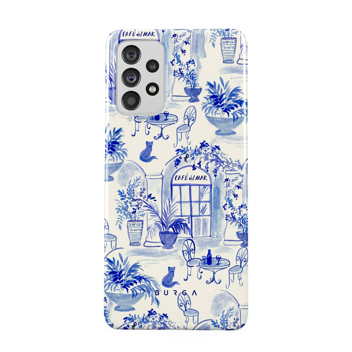 Dieses Design enthält: sanfte Blautöne, Küstenmuster, Café-Elemente, minimalistischer Stil, Retro-Muster, mediterranes Muster.