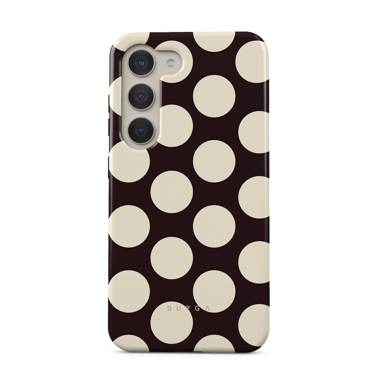Dieses Design enthält: große cremefarbene Punkte auf einem dunklen Hintergrund.