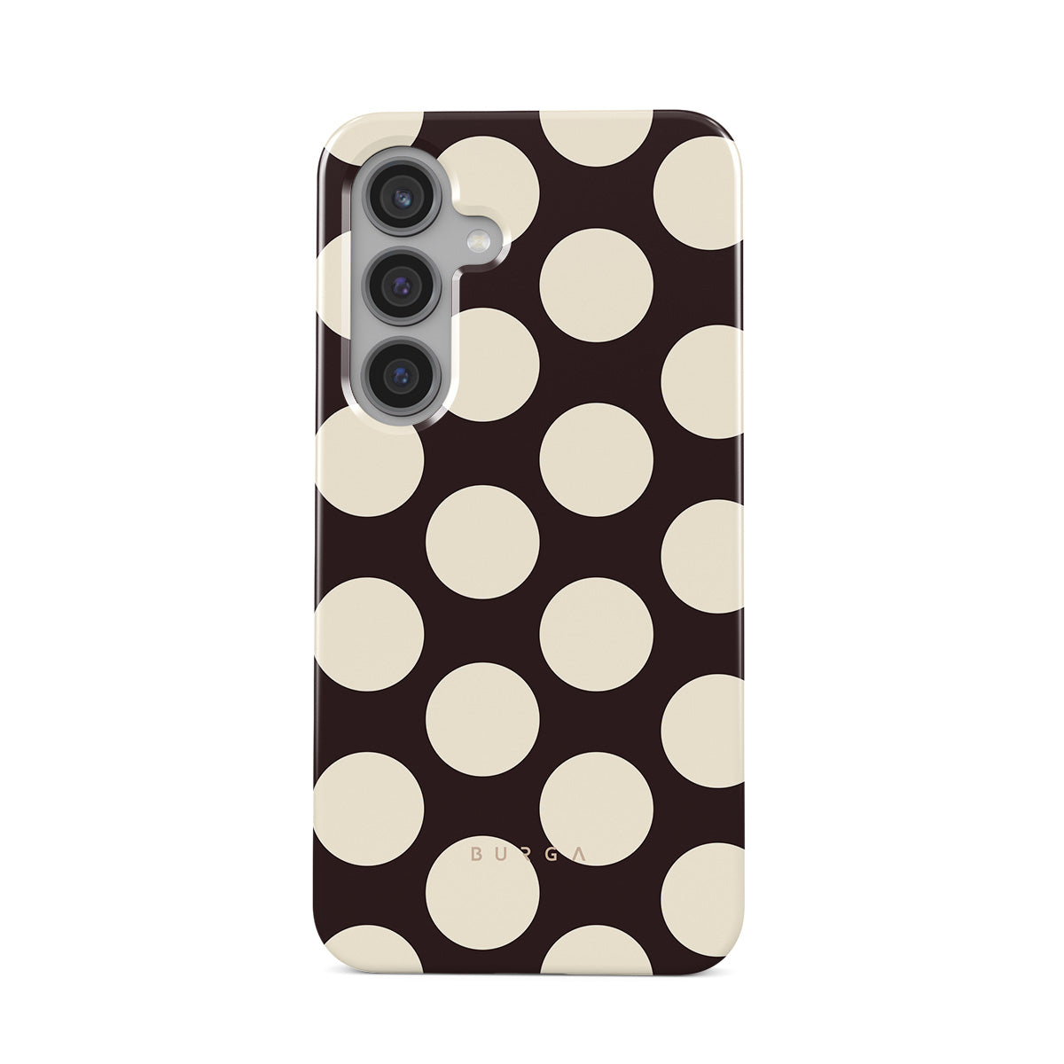 Dieses Design enthält: große cremefarbene Punkte auf einem dunklen Hintergrund.