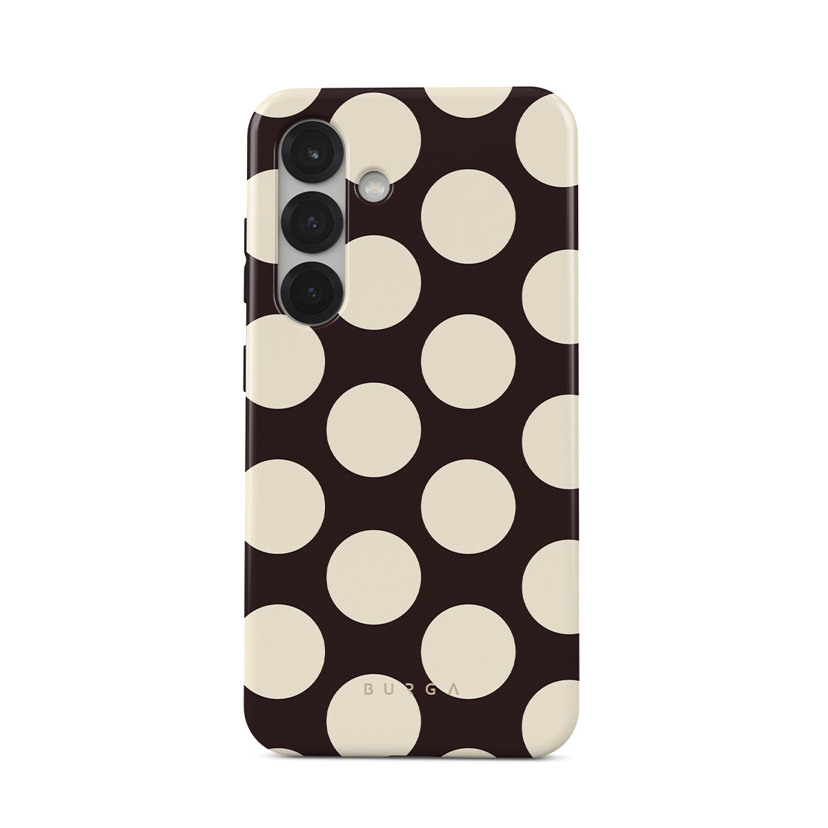 Dieses Design enthält: große cremefarbene Punkte auf einem dunklen Hintergrund.