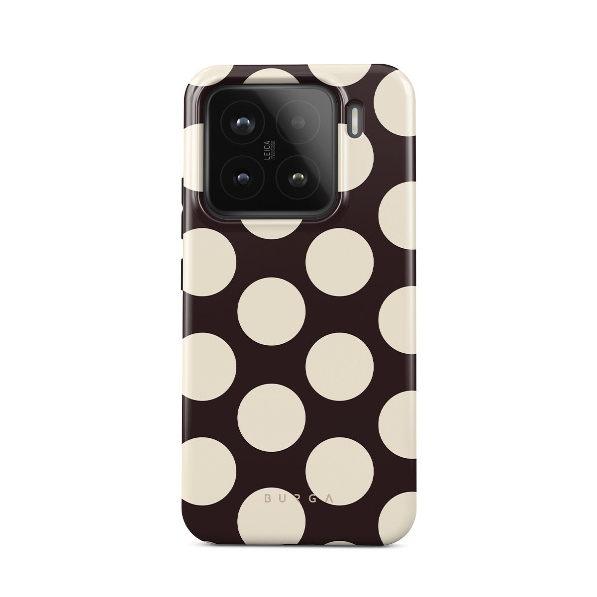 Dieses Design enthält: große cremefarbene Punkte auf einem dunklen Hintergrund.