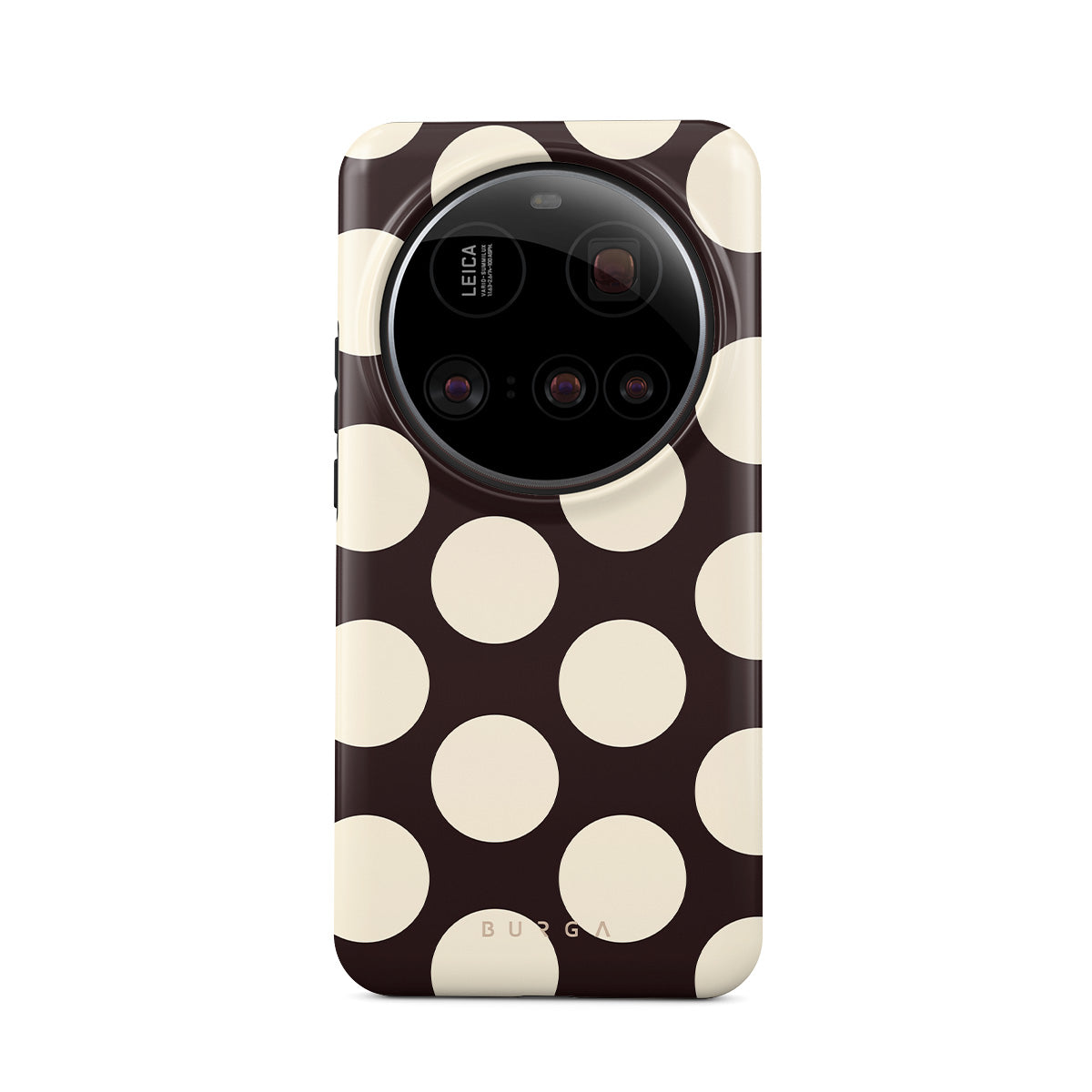 Dieses Design enthält: große cremefarbene Punkte auf einem dunklen Hintergrund.