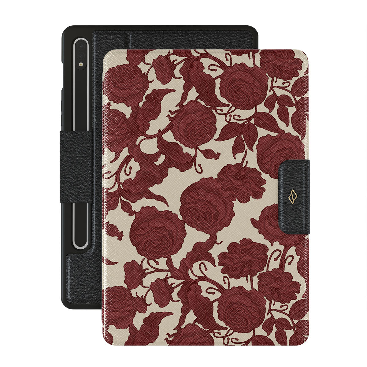 Dieses Design enthält: dunkelrote Rosen, kunstvolles florales Muster, Vintage-Muster .