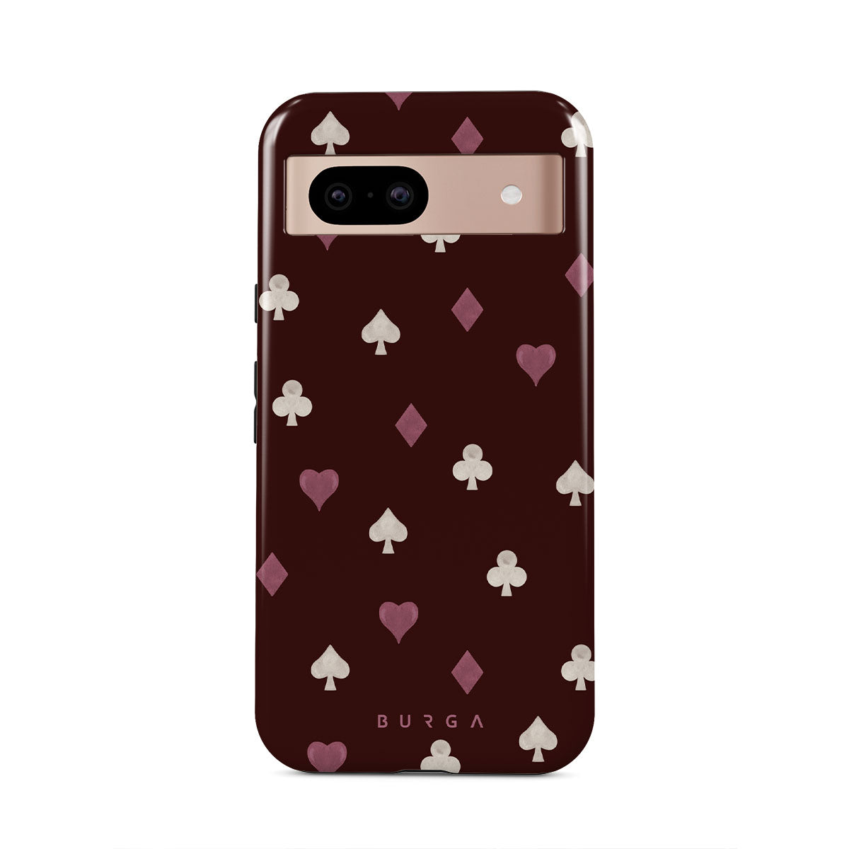 Dieses Design enthält: Spielkartensymbole, Herzen, Pik, Karo, Kreuz, bordeauxroter Hintergrund