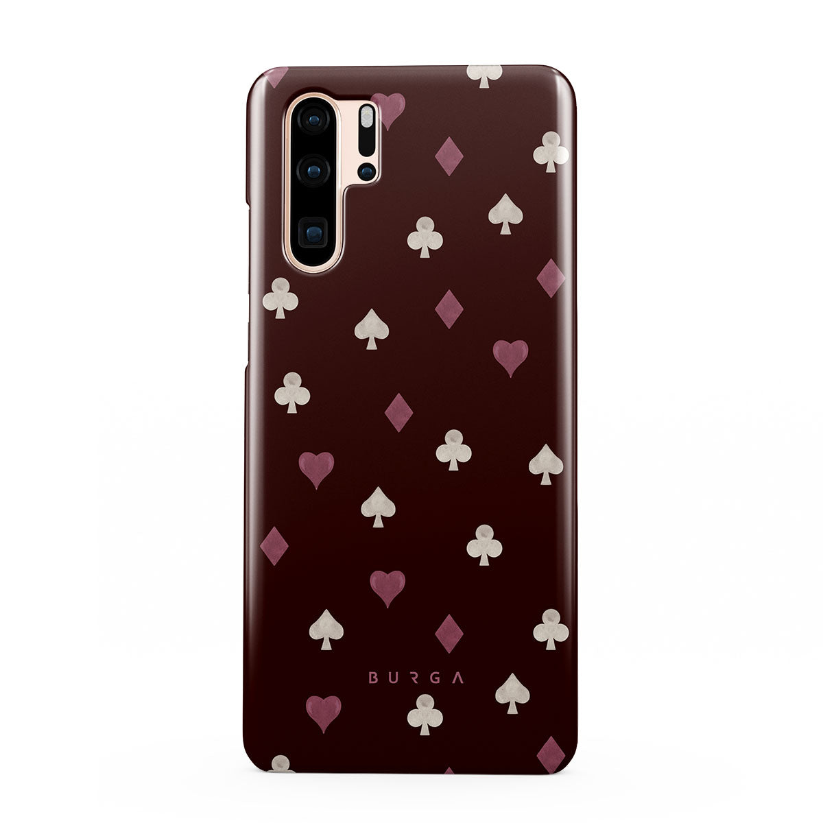 Dieses Design enthält: Spielkartensymbole, Herzen, Pik, Karo, Kreuz, bordeauxroter Hintergrund