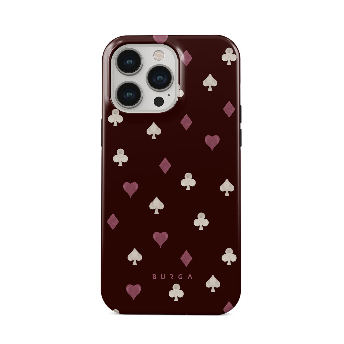 Dieses Design enthält: Spielkartensymbole, Herzen, Pik, Karo, Kreuz, bordeauxroter Hintergrund