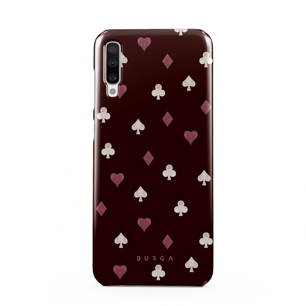 Dieses Design enthält: Spielkartensymbole, Herzen, Pik, Karo, Kreuz, bordeauxroter Hintergrund
