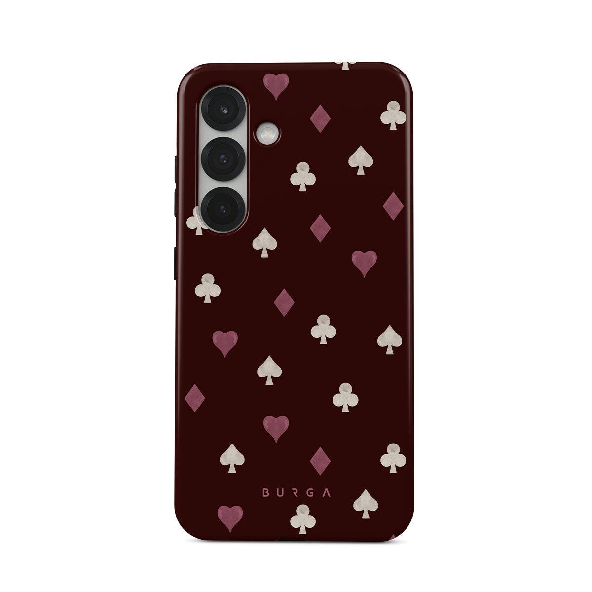 Dieses Design enthält: Spielkartensymbole, Herzen, Pik, Karo, Kreuz, bordeauxroter Hintergrund