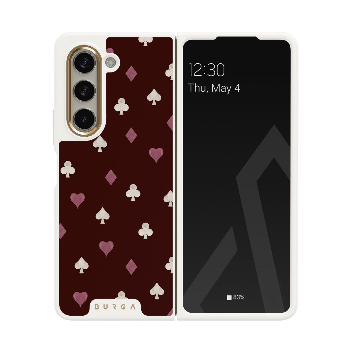 Dieses Design enthält: Spielkartensymbole, Herzen, Pik, Karo, Kreuz, bordeauxroter Hintergrund