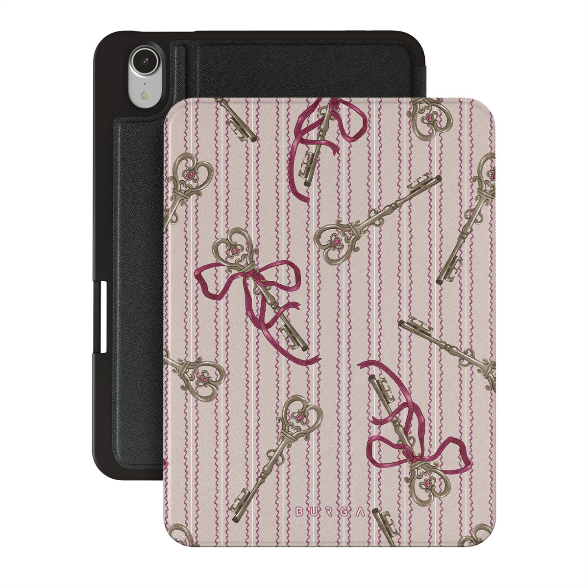 Dieses Design enthält: antike Schlüssel, Schleifen, rosa Bänder, gestreifter Hintergrund