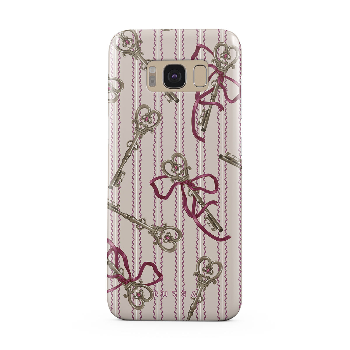 Dieses Design enthält: antike Schlüssel, Schleifen, rosa Bänder, gestreifter Hintergrund